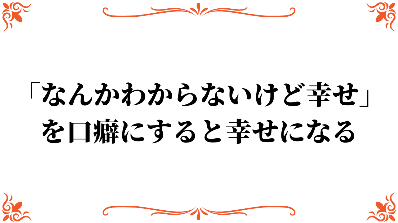「何かわからないけど幸せです。」そう言ってみましょう。