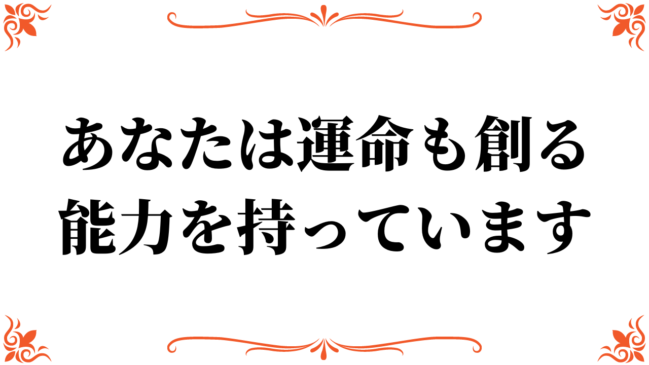 自分の人生を運命とか、あるいは人の話とか、そういうところにきめてもらう必要はありません。