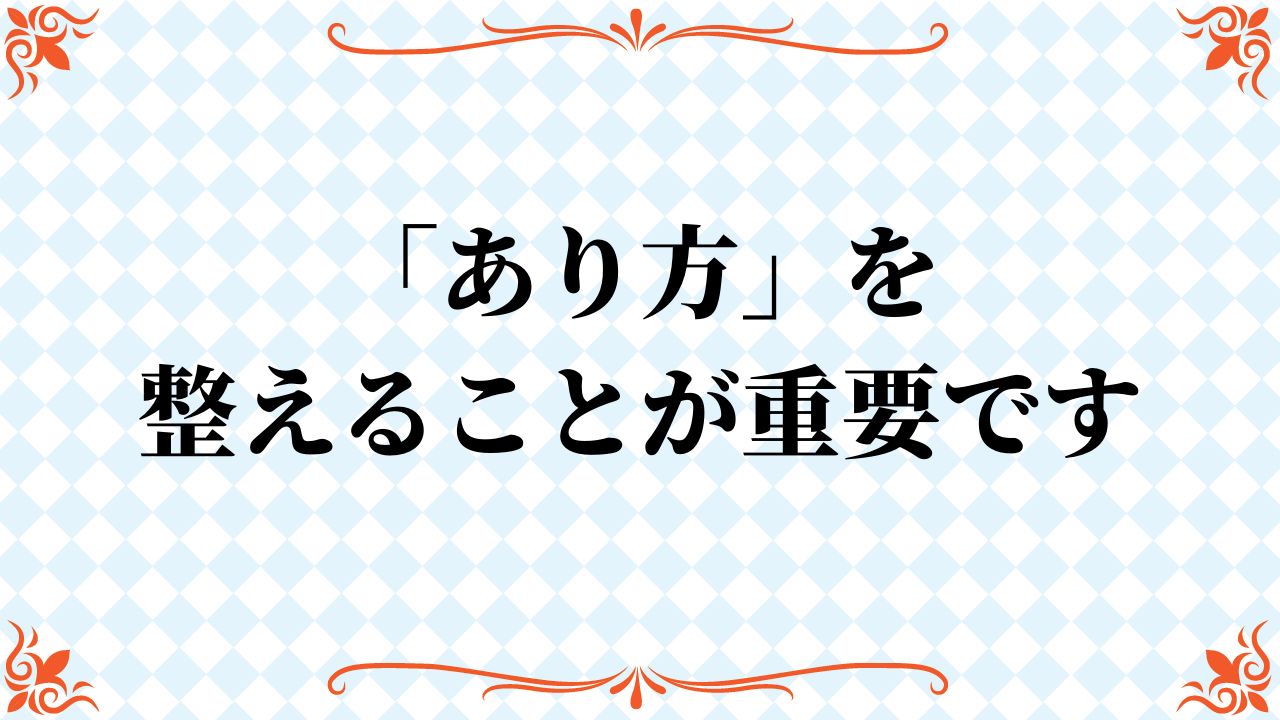 「あり方」を整えることはすごく重要なのです。