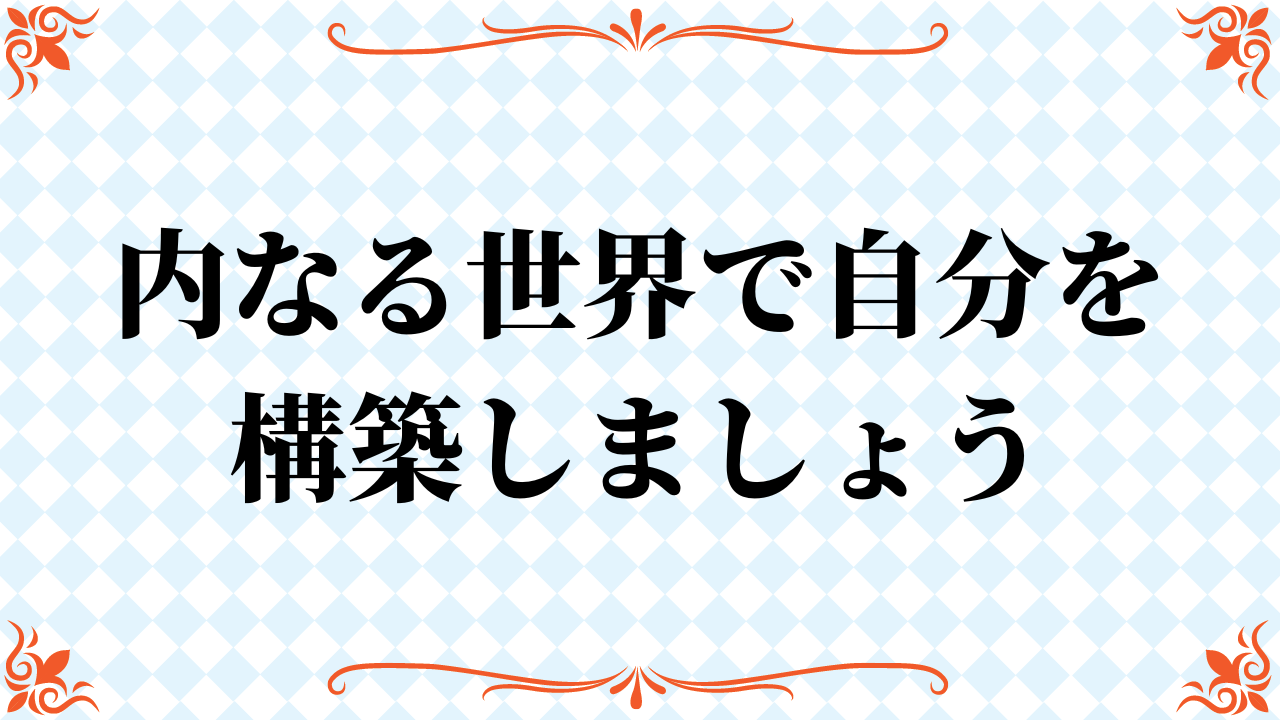 ですから、まず自分の中の世界、内なる世界を構築していくことより良い人生を歩むための内なる世界を構築していくことはとても重要なことです。
