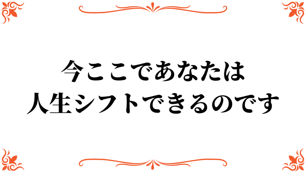 今ここであなたは人生シフトできるのです。