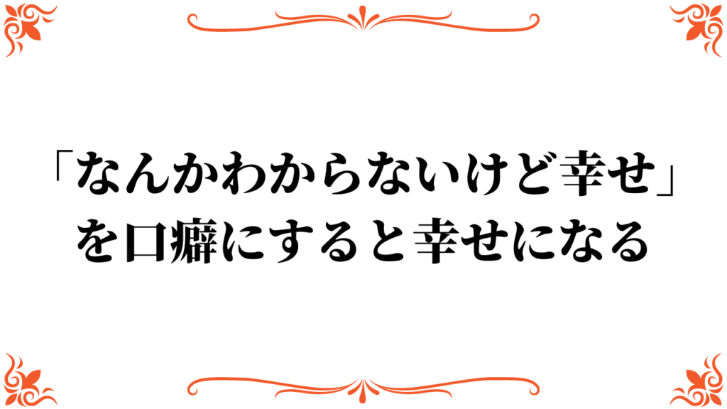 「なんかわからないけど幸せ」を口癖にすると幸せになる