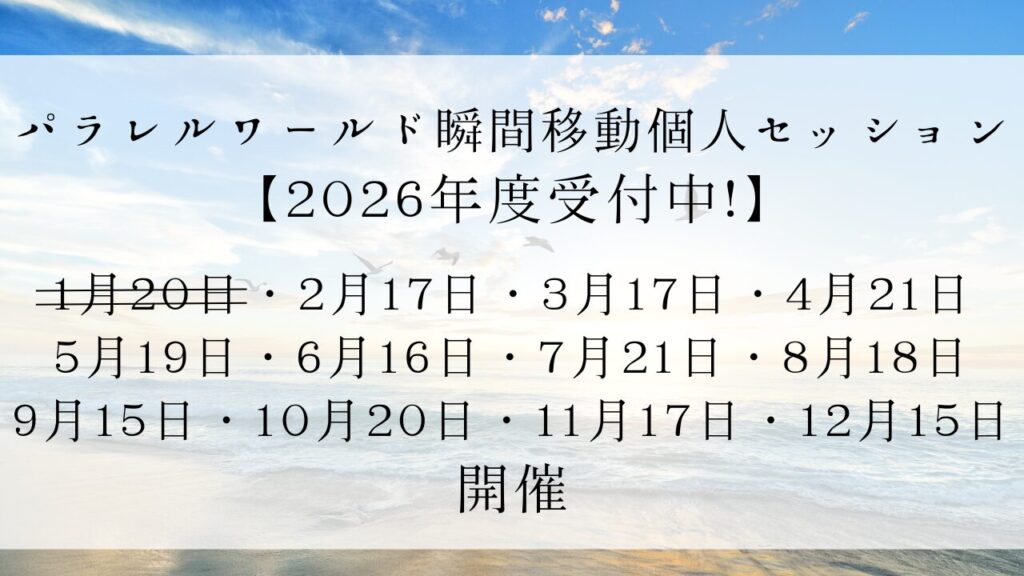 一瞬で信念が書き変わる!パラレルワールド瞬間移動個人セッション 2026年度予約受付中