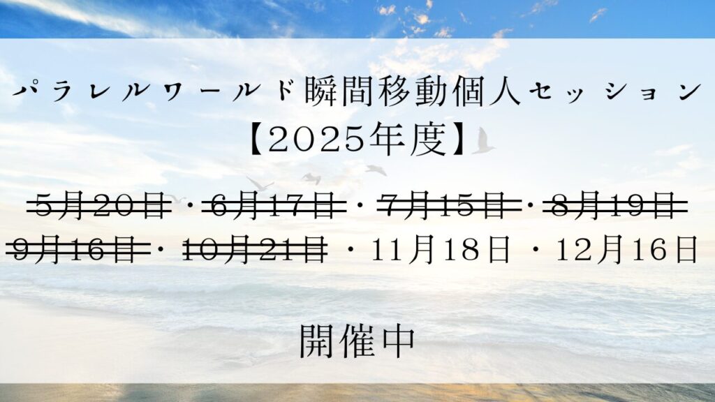 一瞬で信念が書き変わる!パラレルワールド瞬間移動個人セッション 2025年度予約受付中