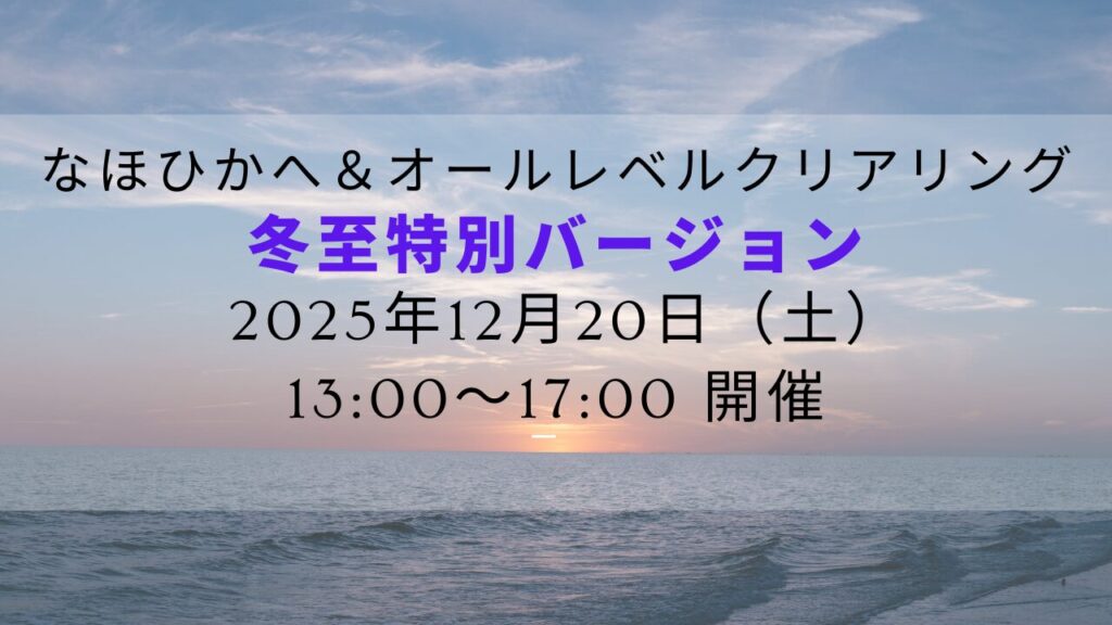 『なほひかへ&オールレベルクリアリング』冬至特別バージョン 12月20日(土)開催