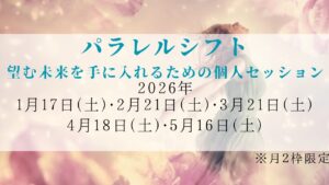 今回は『パラレルシフト:望む未来を手に入れるための個人セッション』です。